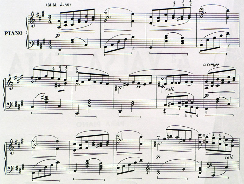 Habanera、1-15小節、Casa Levy.より引用- 4.ª Valsa lenta, Op. 32 (1904?) ゆったりとしたワルツ第4番、作品32